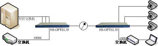 電話光端機(jī)可以通過光纜直接傳輸可提供8路、16路、24路電話、30路,48路電話,組網(wǎng)方式為點(diǎn) 對(duì)點(diǎn),支持FXO、FXS方式。解決了邊緣客戶的電話傳輸問題。該設(shè)備采用的專用數(shù)字復(fù)接芯片功能強(qiáng) 大,它將設(shè)備中的數(shù)字邏輯功能幾乎全部集成,從而顯著提高了產(chǎn)品的性能并降低了成本。該設(shè)備整 機(jī)性能優(yōu)良,工作穩(wěn)定可靠,功耗低,集成度高,體積小,易于安裝維護(hù)。 組網(wǎng)方案: